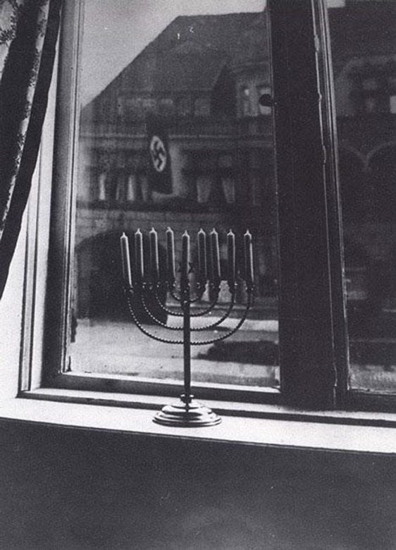 Maybe the chanukiah is a good symbol and metaphor for this work. From tomorrow night we will be putting our chanukiot on our windowsills – proudly asserting our identities and our story of hope – of the underdog being victorious, of hope and light being possible in dark times. I’m sure many of you have seen the picture of a chanukiah sitting in front of a window which shows, on the street below, a Nazi flag. The photograph was taken in 1931 by Rachel, wife of Rabbi Akiva Posner, of their candle-lit Hanukkah menorah against the backdrop of the Nazi flags flying from the building across from their home in Kiel Germany. An act of defiance and an invitation to us to address our fears and safely and slowly open our hearts.